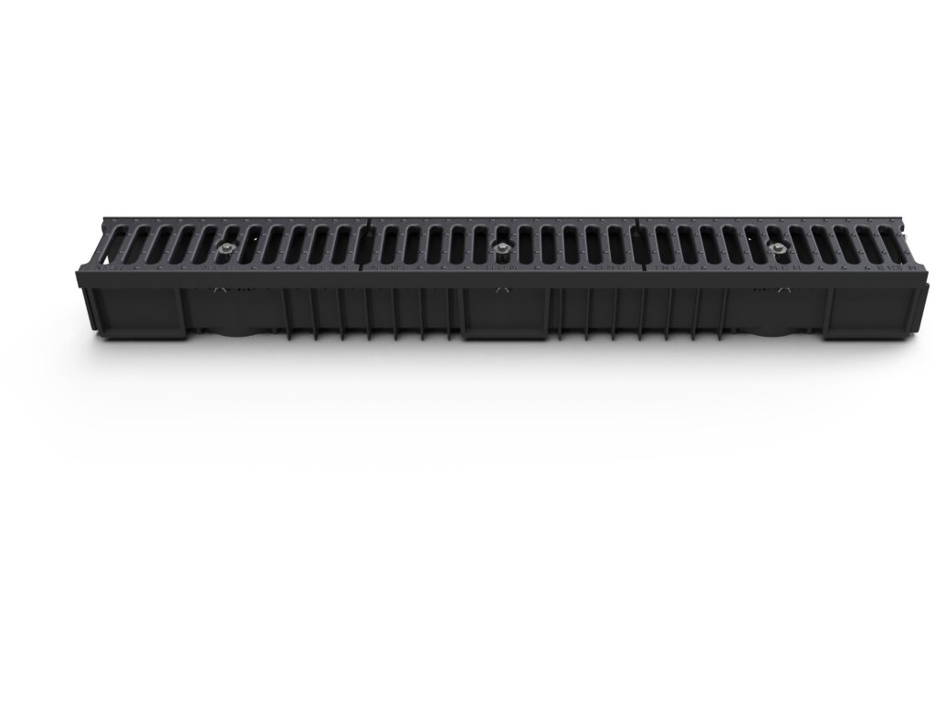 Außenablaufrinnen mit Gussrost eignen sich zur Entwässerung von Wohngebäuden, Verkehrsflächen für Radfahrer und Fußgänger, Zufahrts- und Fußwegen, Bürgersteigen, Parkplätzen für PKWs. Alle unsere Rosttypen sind mit einer verzinkten Schraube gesichert, was ihre sichere Befestigung gewährleistet. Maximale Belastung Klasse B125kN Prüfkraft. Hergestellt aus PP mit UV-Stabilisierung. Rost aus Gusseisen DIN 1691, Belastung nach EN 1433-B 125 – 12.500 kg.
