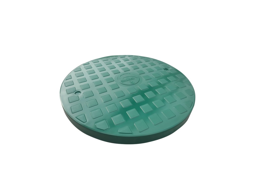 Begehbarer Deckel 600mm mit einer Traglast von bis zu 200 kg. Farbe grün mit UV-Stabilisierung.
