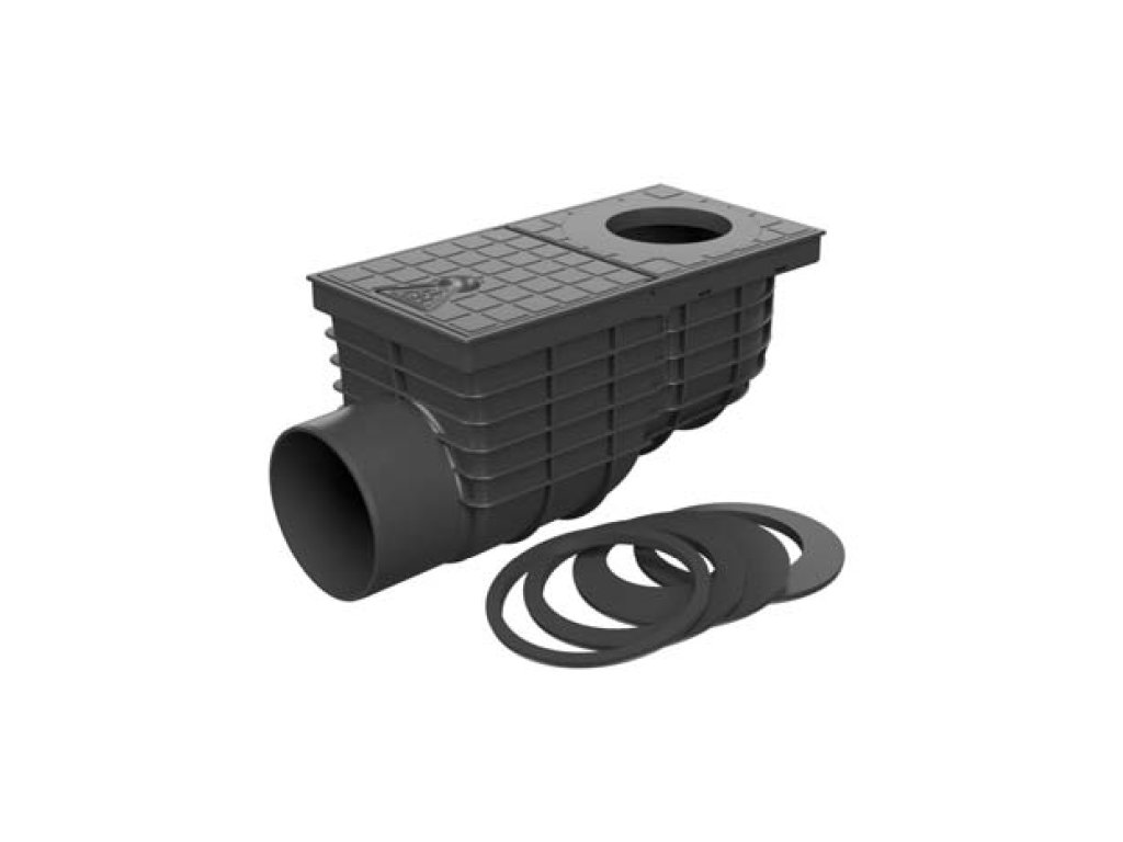 Es ermöglicht auch den Anschluss von Regenfallrohren. Es enthält eine Geruchsverschlussklappe, die das Zurückströmen von Gerüchen aus dem Kanalisationsrohr verhindert. Ein Korb ist ebenfalls enthalten. Beständigkeit bis 90°C mit UV-Stabilisierung.