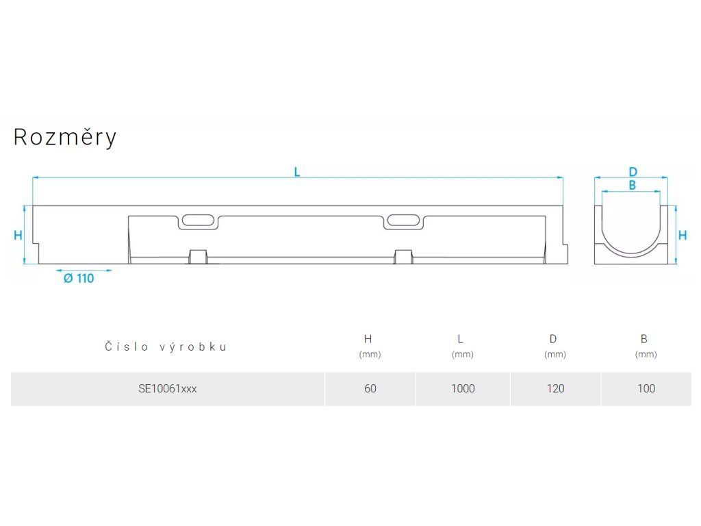Entwässerungsrinne Drain-Self D110 H60 aus Polymerbeton mit Gussrost, L 1,0 m, befahrbar B125 (12,5 t)