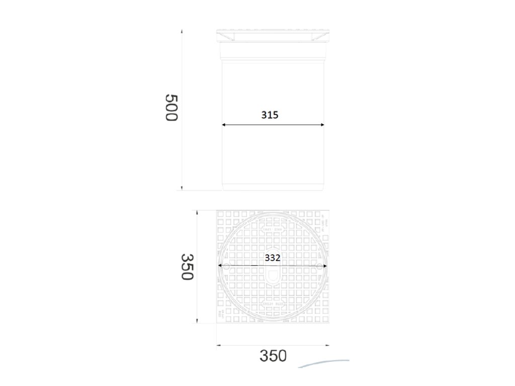 Gusseisen-Deckel B125 350x350mm, für Kunststoffschacht DN400/315, Traglast 12,5t, mit Teleskop L 500mm (KPB150)