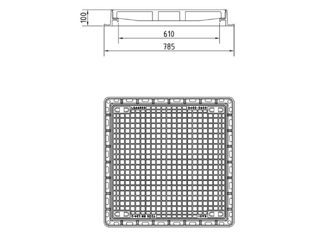 Gusseisen-Deckel, quadratisch, D400-E600, wasserdicht, Abmessung 600x600mm (KQ66EL05CS)