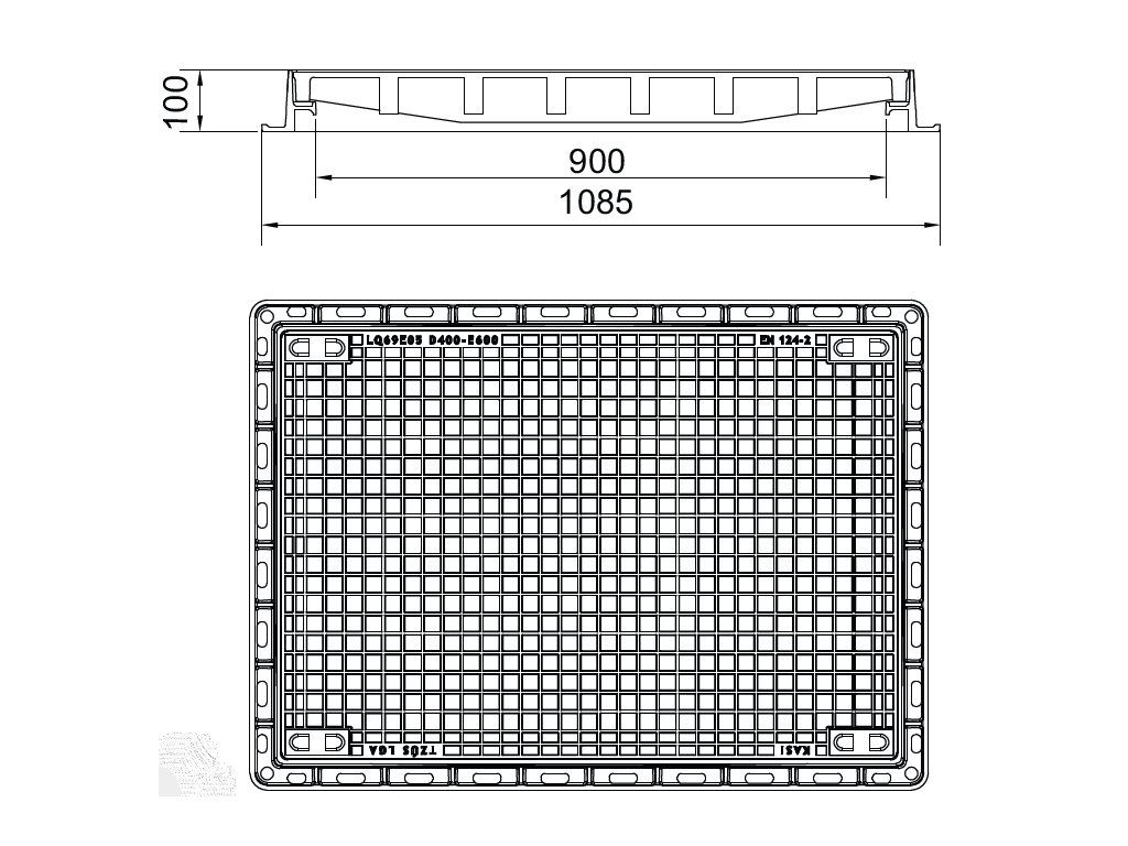 Gussdeckel rechteckig D400-E600, Abmessung 600x900mm (KQ69EL05C)