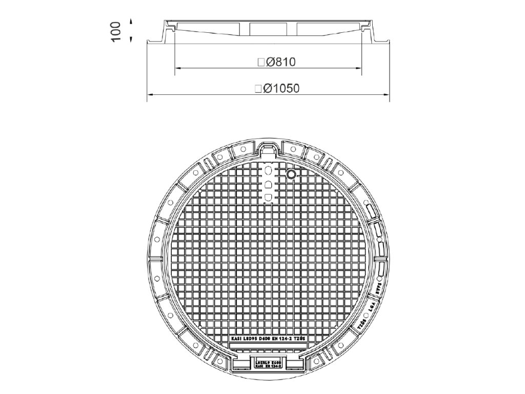Schachtabdeckung Europa 9 DN800, Gussrahmen Durchmesser 1050mm H. 100mm, D400 ohne Belüftung