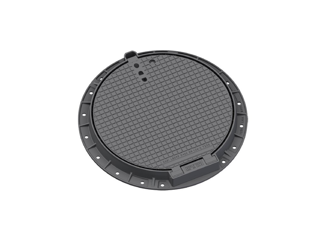 Kanalgussdeckel Europa 9 DN800, leises Design, Gussrahmen H 100mm, ohne Zapfen, ohne Aussparung für Schmutzfänger, D 400 ohne Belüftung, Grundfarbe Schwarz.