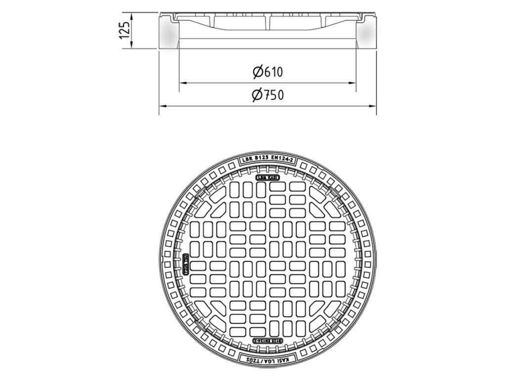 Kreisförmiger Gussrost KBB0M B125, Rahmen Begu, Belastbarkeit 12,5t, Durchmesser 600mm