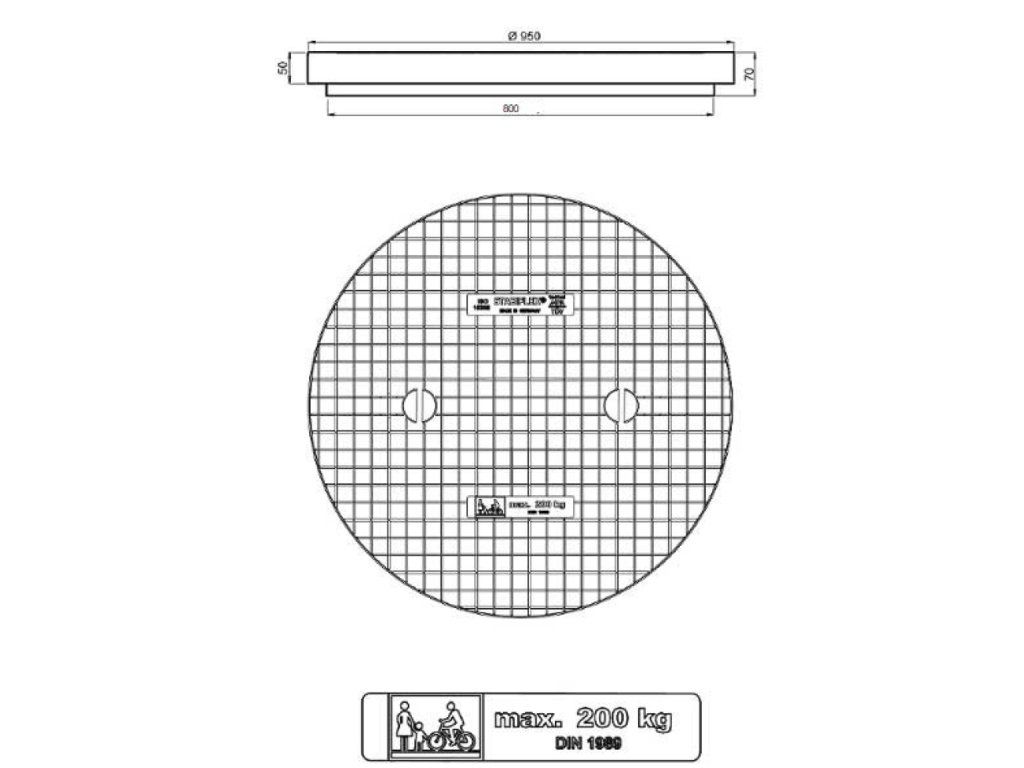Kunststoffdeckel PPR 950/800, Belastbarkeit 200kg, ohne Rahmen, für Schächte und Brunnen