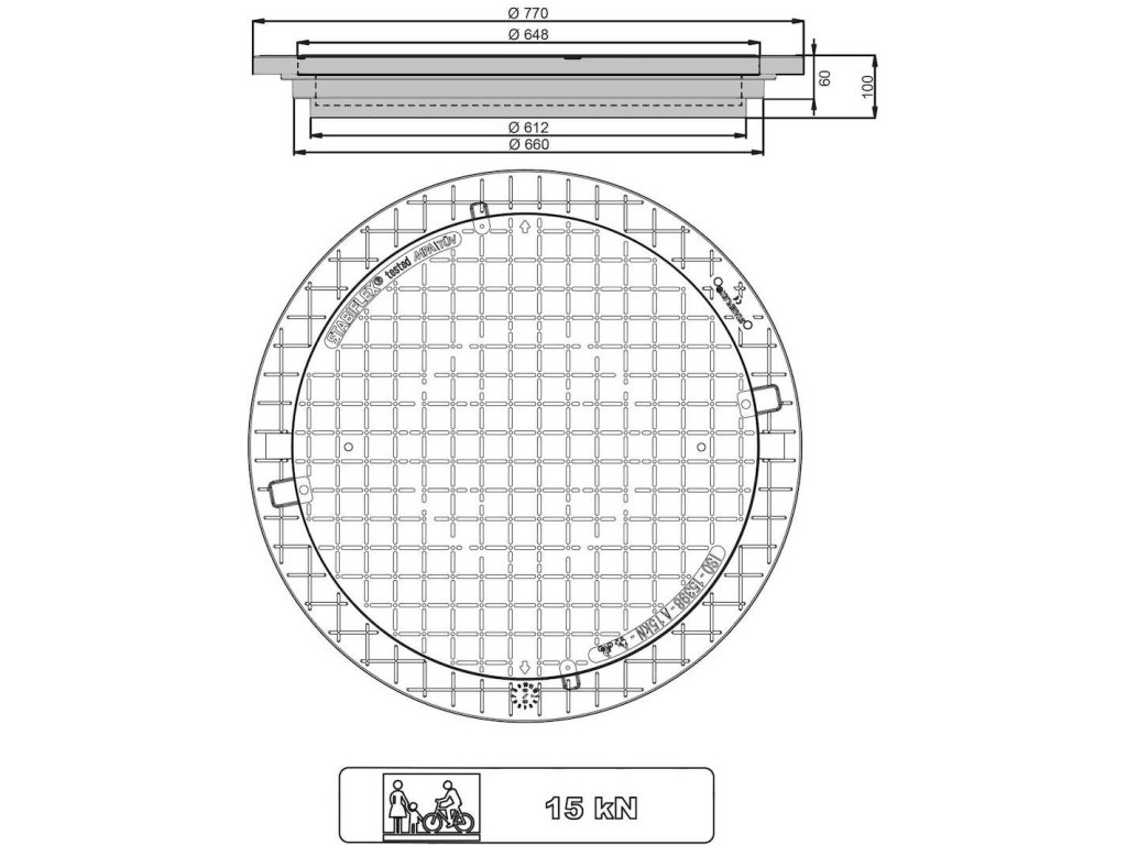 Abmessungen: DN 600 - Außendurchmesser des Rahmens: 770 mm - Bauhöhe 60 mm
