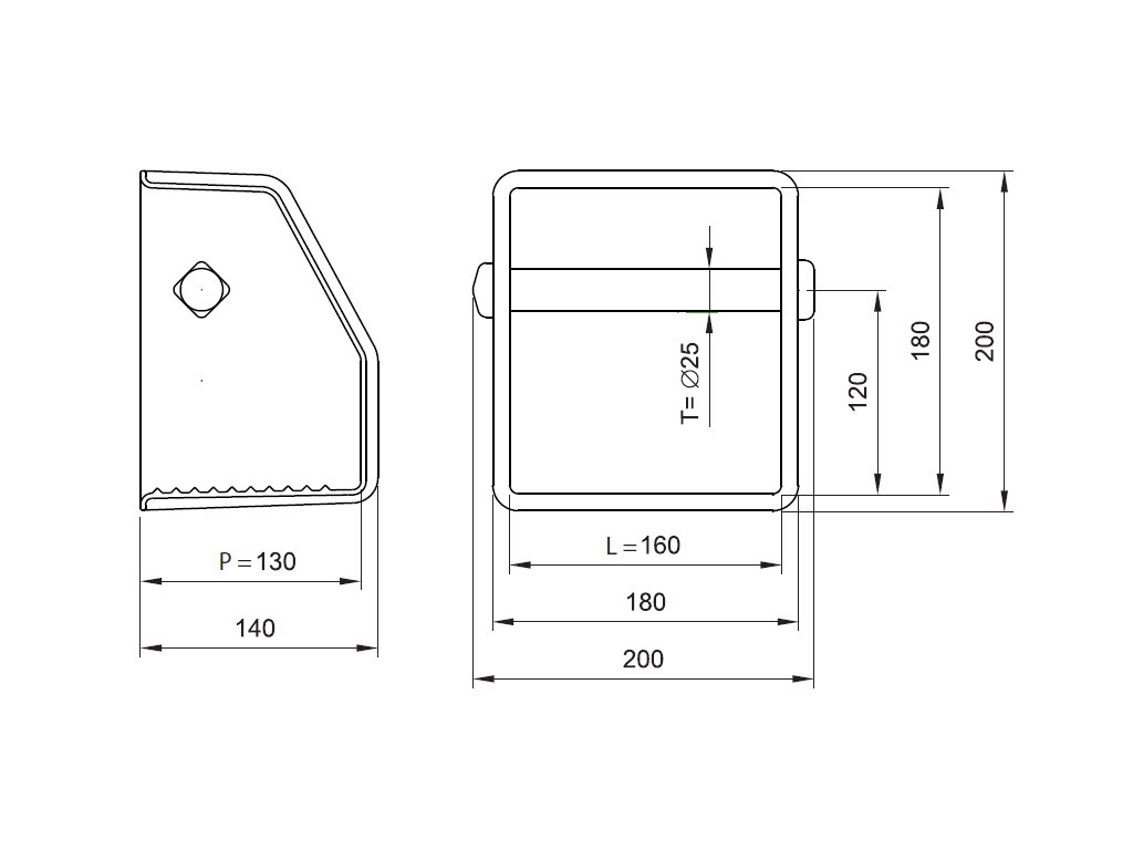 T – Breite des Tragprofils = 25 mm (minimal zulässiger Normwert = 20 mm)